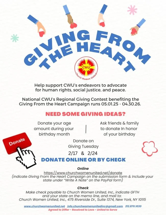 The Recognition and Memorial Fund is available to memorialize or honor a woman who has served the movement of Church Women United, Inc. Your gift will advance the work of the organization.