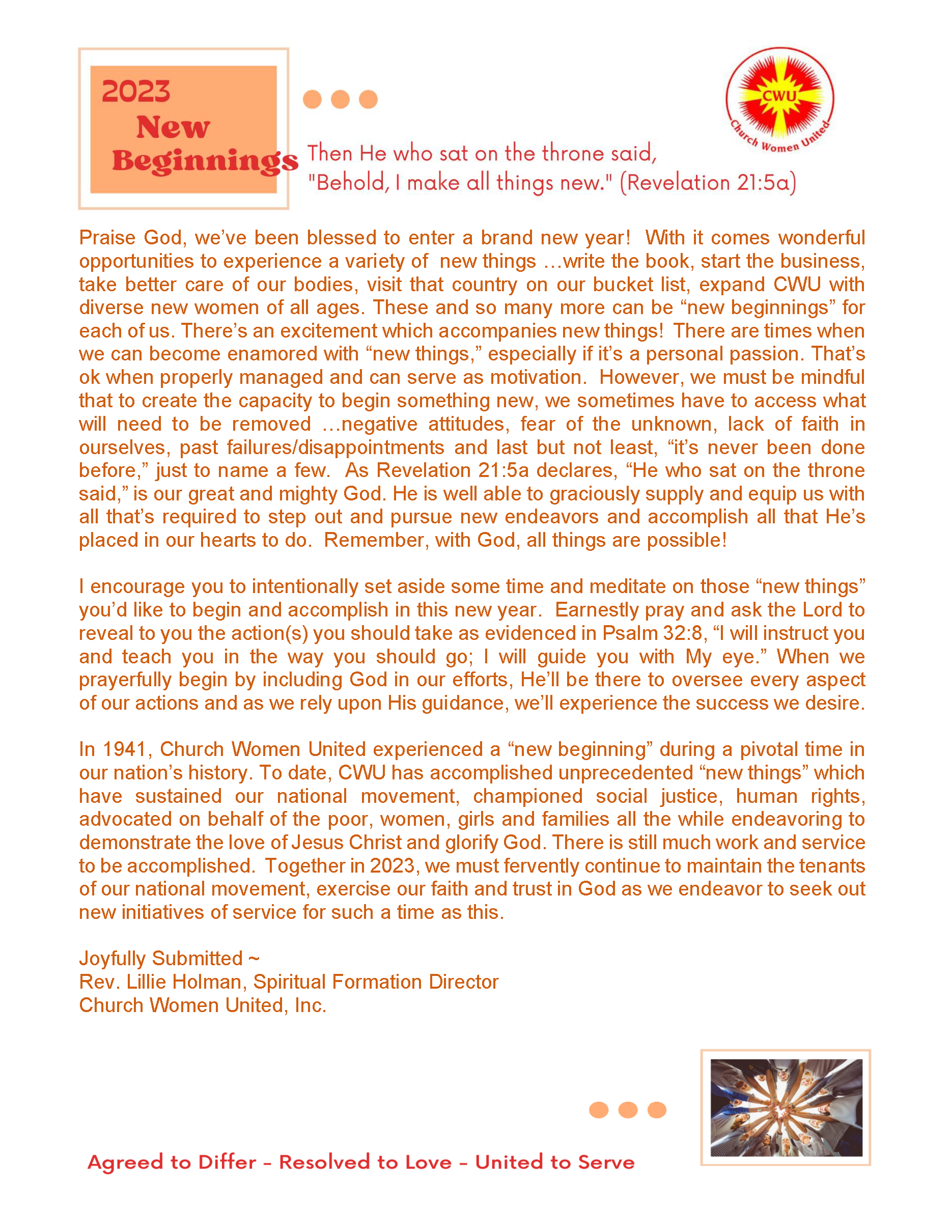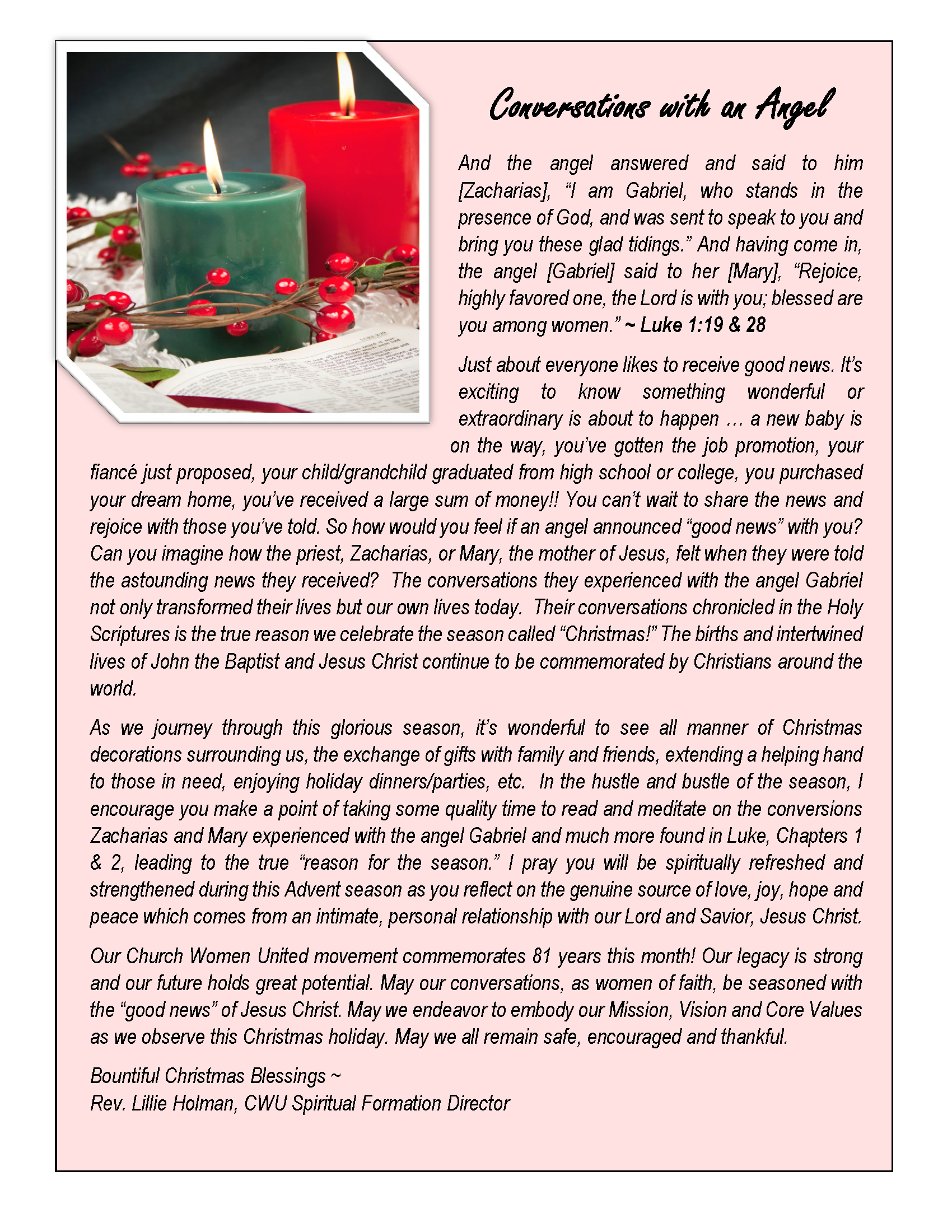 Customarily during the summer months, our CWU movement takes time to refresh, vacation and enjoy family/friends. During this brief hiatus, we continue to be cognizant of our National CWU Mission that we are an inclusive ecumenical Christian women’s movement celebrating unity in diversity and empowering women to work towards a world of peace and justice.