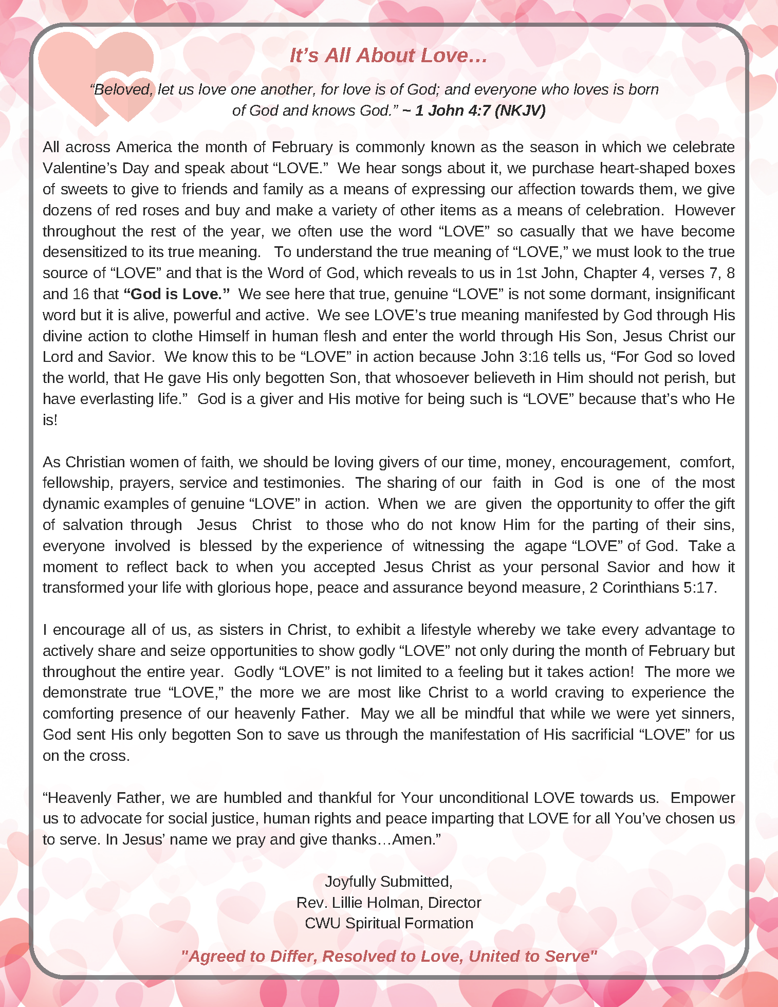 We, as Christians and CWU women of faith, do not have to succumb in our endeavors to resist or overcome the realities of the evil we encounter. We’ve been and continue to equip ourselves to be steadfast in our collective initiatives to advocate for freedom and justice.